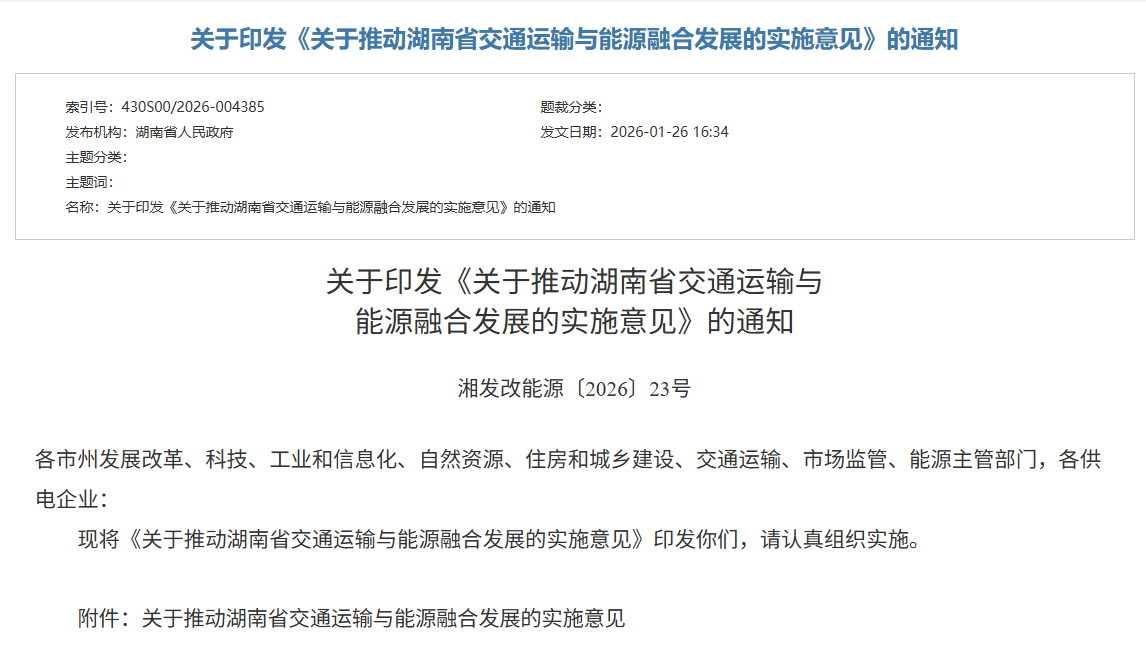 1月26日,湖南发改委在完整发布了《关于推动湖南省交通运输与能源融合发展的实施意见》(以下简称《意见》)。《意见》提出,到2027年,持续优化完善公路水路充(换)电设施布局,初步具备符合交通运输装备用能标准的氢气供给能力;到2035年,公路充换电服务能力有效提升,LNG加气站布局建设全面完成,京广、沪昆、许广氢能示范走廊全线贯通。 ...