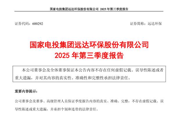 国家电投集团远达环保股份有限公司(简称:远达环保)近日发布《2025年第三季度报告》。2025年前三季度,远达环保实现营收约29.36亿元,同比减少5.16%;归属于上市公司股东的净利润约5603万元,同比减少36.6%;基本每股收益0.07元,同比减少36.36%。图源:远达环保公告 截至报告期末,远达环保资产总计为101.23亿...