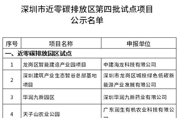 深圳市生态环境局关于深圳市近零碳排放区第四批试点项目名单的公示 各有关单位: 根据《深圳市近零碳排放区试点建设实施方案》(深环〔2021〕212号)和《深圳市生态环境局关于开展第四批近零碳排放区试点申报的通知》等有关文件,我局会同有关部门组织开展了深圳市近零碳排放区第四批试点申报项目评审工作。经自愿申报、材料审查、专家评审等程序,...