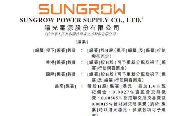 近日,储能巨头阳光电源股份有限公司(简称:阳光电源)正式向港交所提交上市申请书,独家保荐人为中金公司。据悉,阳光电源拟募资用于研发用途,包括新一代光伏与储能产品的研发投入,以及建设及升级研发中心;在海外建造生产基地;加速数智化建设,赋能业务发展;营运资金及其他一般公司用途。 招股书显示,阳光电源是一家全球领先的清洁能源科技企业。公司...