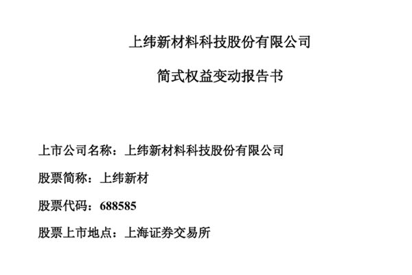 近日,简式权益变动报告书(金风投控)(简称:上纬新材)发布《简式权益变动报告书(金风投控)》。自2025年7月9日至本公告披露日,金风投控通过集中竞价交易方式减持上纬新材股份158.44万股,持股比例降至5.00%。金风投控减持主要是出于自身资金需求。图源:上纬新材公告 此外,金风投控与上海致远新创科技设备合伙企业(有限合伙)(下称...
