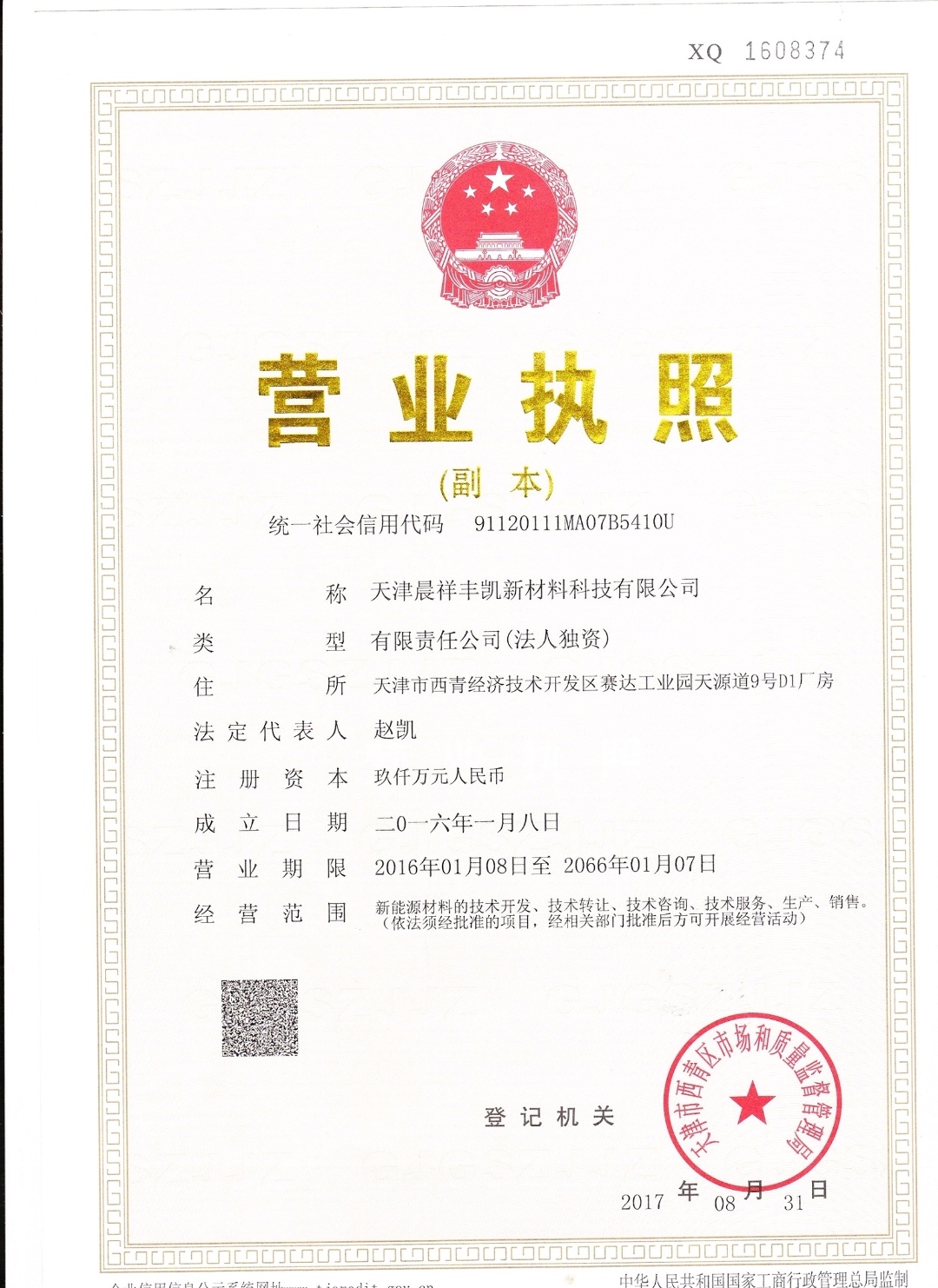 天津晨祥丰凯新材料科技有限公司 地址: 天津市西青经济技术开发区赛达工业园天源道9号D1厂房 技术支持: