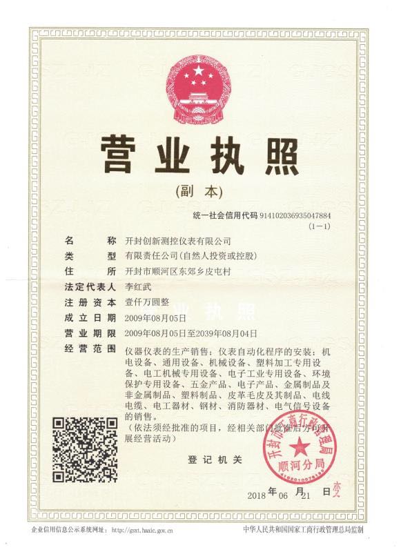 开封创新测控仪表有限公司 地址: 东郊乡皮屯村 技术支持: